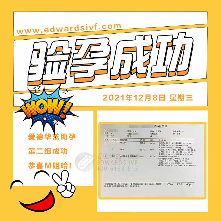 W女士,北京人,41岁,某房地产公司集团总裁,不孕2年多,曾在某医三院促排2次,移植4次均都失败,后通过朋友介绍来到我爱德华兹国际助孕中心,主任根据W女士的情况制订了PPOS方案后,成功移植一枚胚胎,现在已怀孕5周,血值稳定,现在就坐等B超啦。